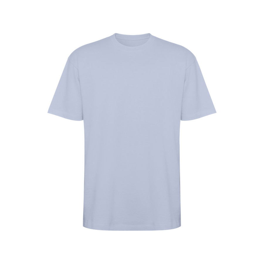 Оверсайз футболка с коротким рукавом. Круглый вырез горловины обработан рибом 2х1. Боковые швы. Широкая двойная отстрочка по рукавам и низу.