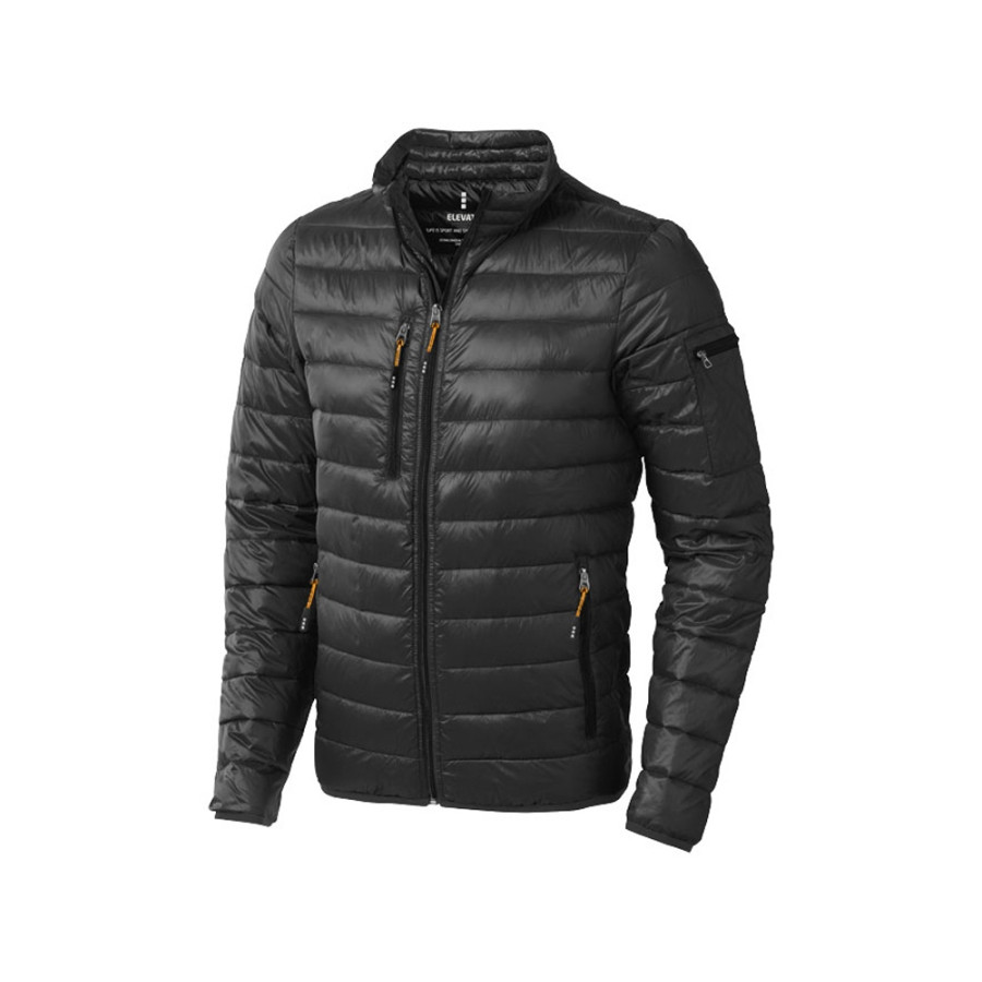 Легкая куртка Scotia. Стандартный покрой. Ткань не пропускает пух. Карманы для рук и нагрудный на молнии. Карман на рукаве на молнии можно использовать для нанесения. Резинка на манжетах и внизу куртки. Ремешки на собачку (второй комплект в цвете антрацит). Внутренний противоветровой клапан и защита подбородка. Ткань дышащая, ветронепроницаемая и влагоотталкивающая. Отражающий лого сзади. Легкий пуховик. Ткань из 100% нейлона с матовым и блестящим водоотталкивающим покрытием, 20D. 80% пух и 20% перо. 115 г/м².