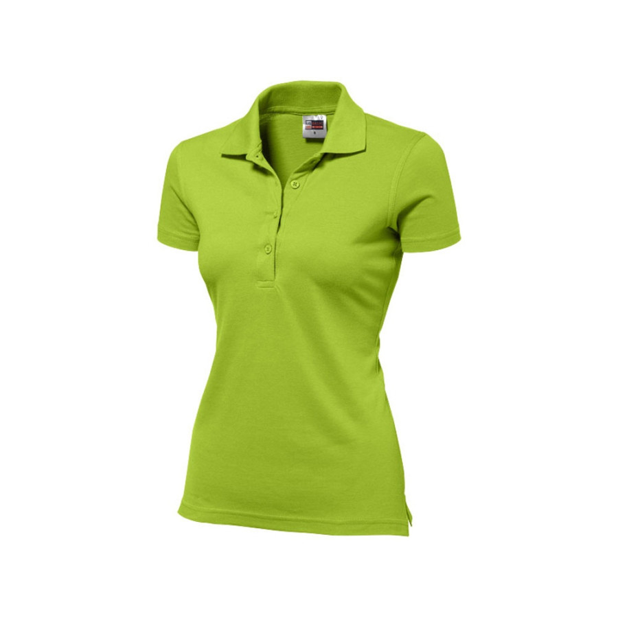 Женская рубашка-поло First. Воротник 1х1. Обшивка внутри воротника. Мужская и детская модели с 2 пуговицами, женская - с 4 пуговицами. Пуговицы с гравировкой в тон. Пике, 100% хлопок. 160 г/м2.