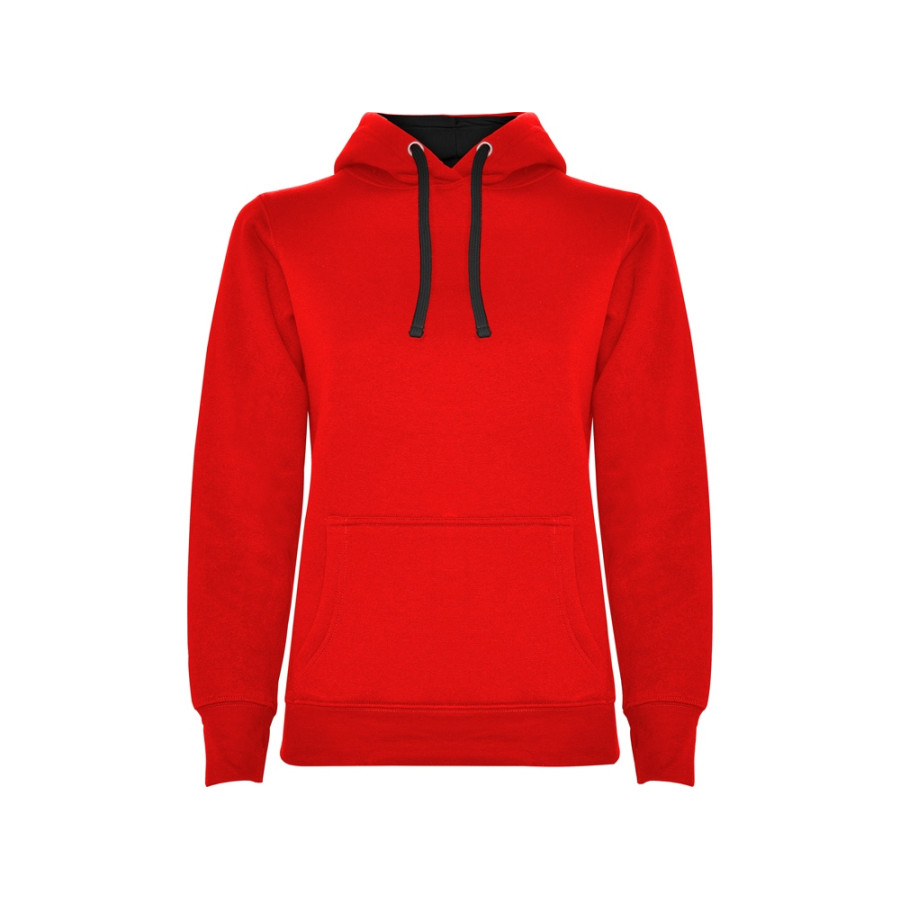 Худи с капюшоном и шнурками. Отделка горловины спинки внутри тесьмой, Риб 1х1 по низу изделия и манжетам. Карман кенгуру. На манжетах вырез под большой палец