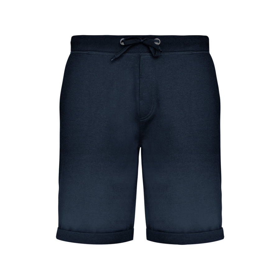 Спортивные шорты с широким эластичным поясом со шнуром для регулировки. Боковые карманы, задний карман и отвороты внизу с усиленными строчками.