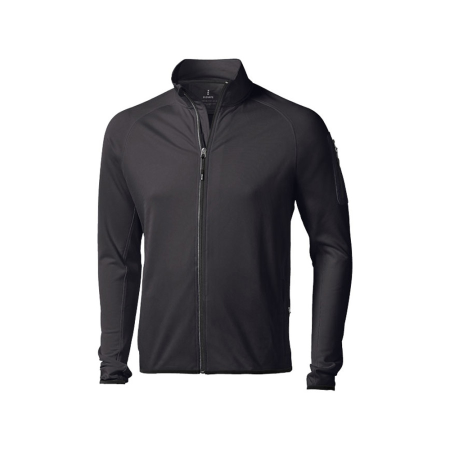 Флисовая куртка Mani с застежкой-молнией на всю длину. Стандартный покрой. Отверстие для большого пальца. Резинка на манжетах и внизу куртки. Внутренний противоветровой клапан и защита подбородка. Карман для электроники внутри правого кармана. Отражающие детали. Карманы на рукаве и для рук на молнии. Атласная лента внутри горловины. Эластичность в четырех направлениях. Контрастный цвет полумесяца. Однослойная джерси, 91% полиэстер и 9% эластан. Чесаная внутренняя сторона. 245 г/м².