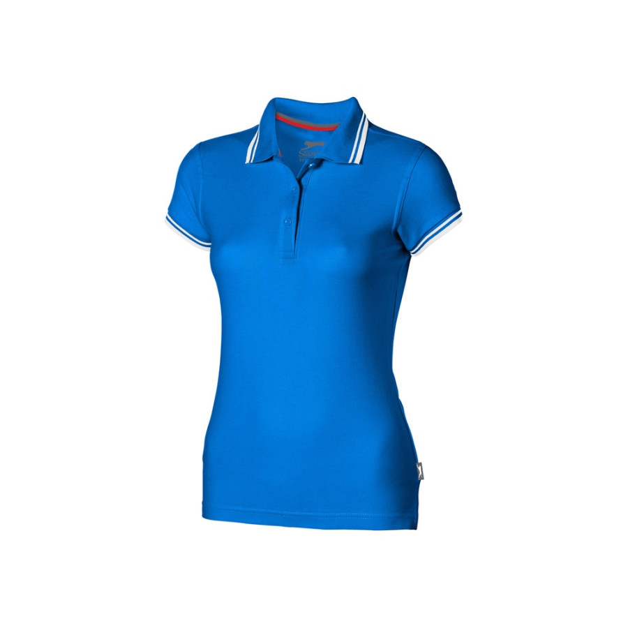 Женская рубашка поло с короткими рукавами Deuce. Прилегающий покрой. Воротник и манжеты резинка 1х1. Пуговицы с гравировкой. Двухцветная лента внутри на горловине. Лейба-флажок сбоку. Пике, 100% чесаный хлопок. 180 г/м².