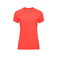 Спортивная футболка с коротким рукавом реглан для женщин. Круглый вырез горловины с отделкой плоским швом. Рукав сложного кроя для обеспечения дополнительного удобства при занятиях спортом. Отделка плоским швом с застилом по пройме и рукавам.
