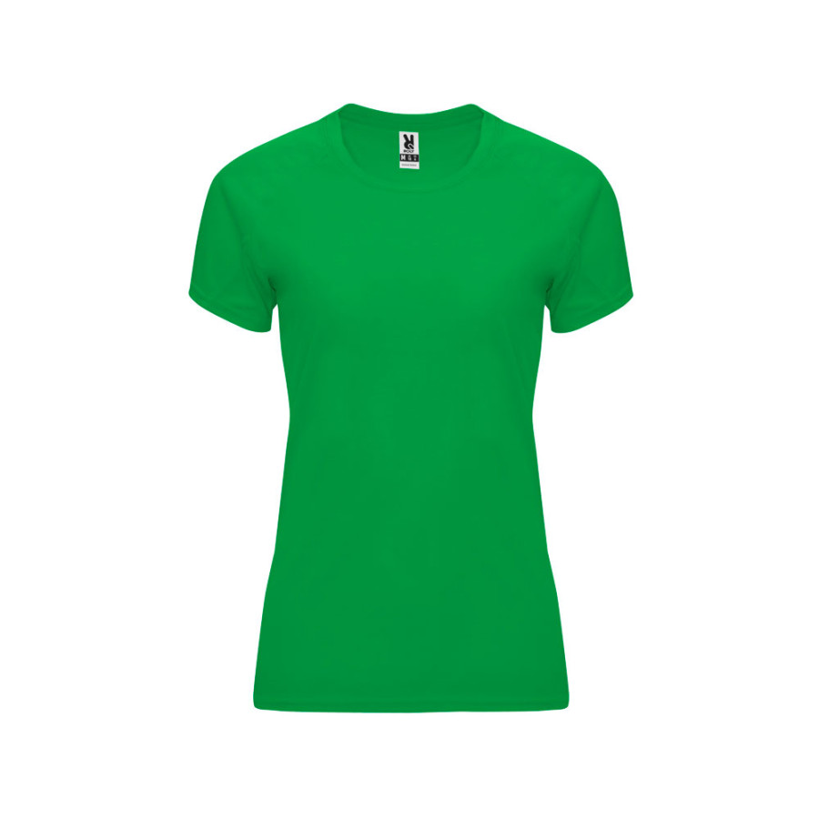 Спортивная футболка с коротким рукавом реглан для женщин. Круглый вырез горловины с отделкой плоским швом. Рукав сложного кроя для обеспечения дополнительного удобства при занятиях спортом. Отделка плоским швом с застилом по пройме и рукавам.