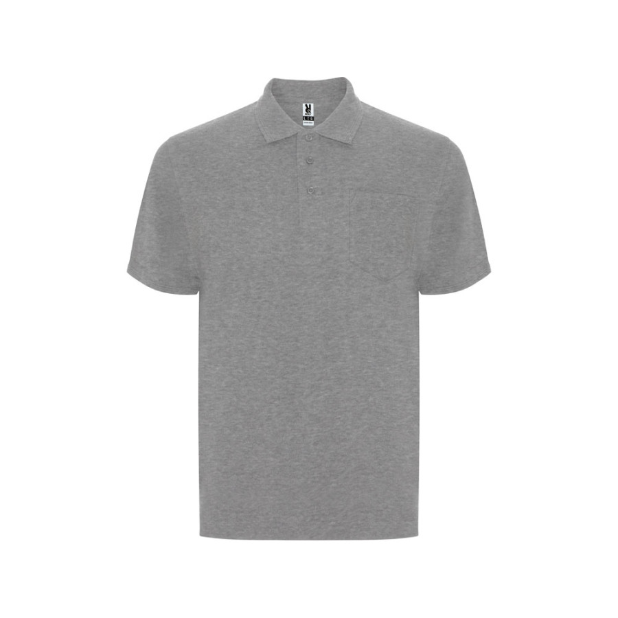 Рубашка поло с коротким рукавом и накладным карманом. Воротник и манжеты из риба 1х1 со структурными полосками по краю. Планка застегивается на три пуговицы. По горловине укрепляющая тесьма.
