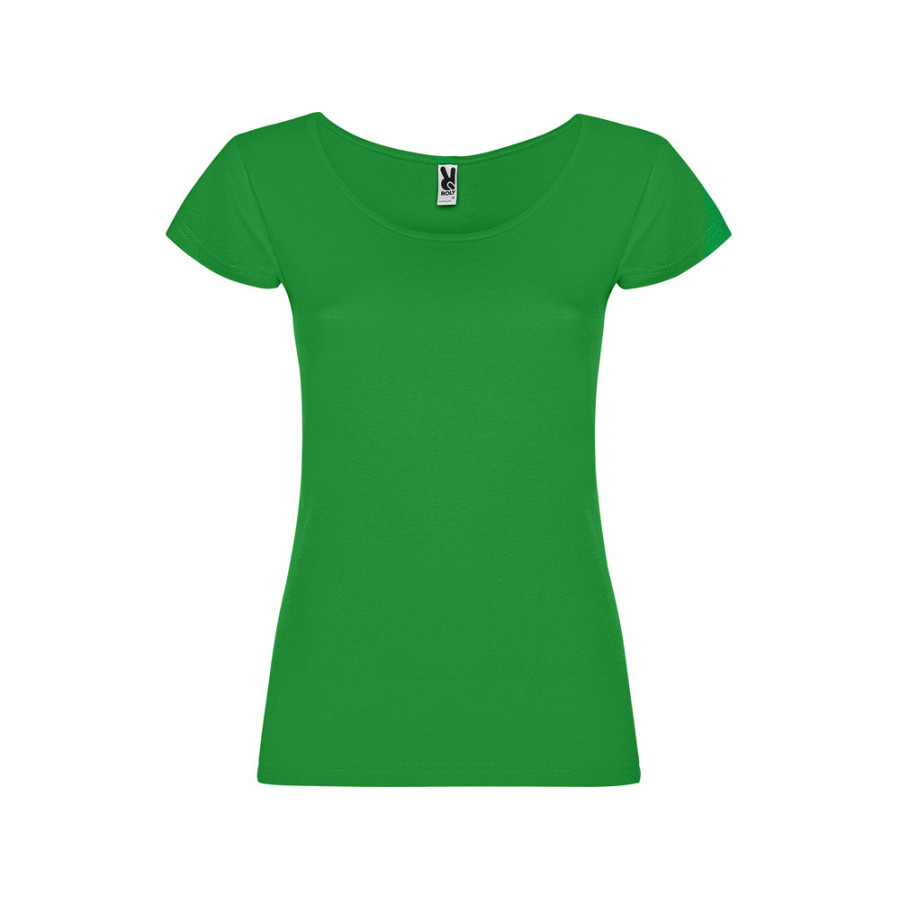 Прилегающая женская футболка с глубоким вырезом, обработанным рибом.