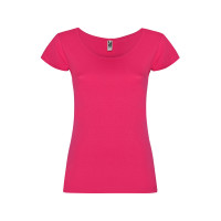 Прилегающая женская футболка с глубоким вырезом, обработанным рибом.