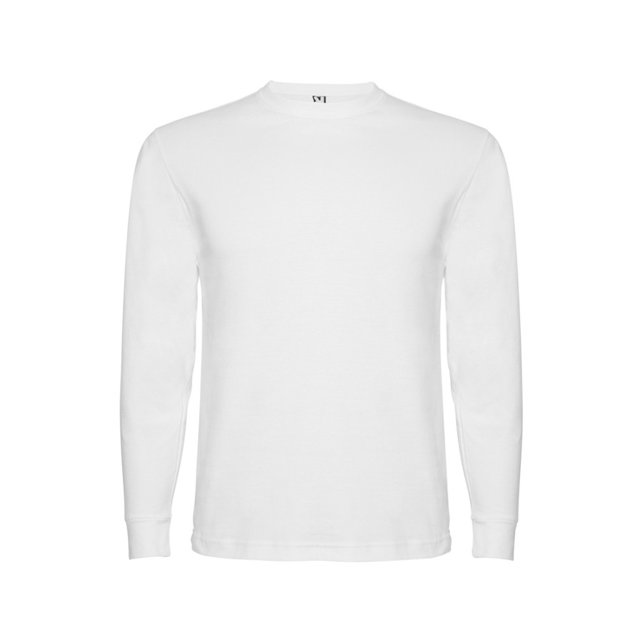 Футболка с длинным рукавом без боковых швов. Круглый вырез горловины и манжеты из риба 1х1. Укрепляющая отделочная строчка по горловине и плечам