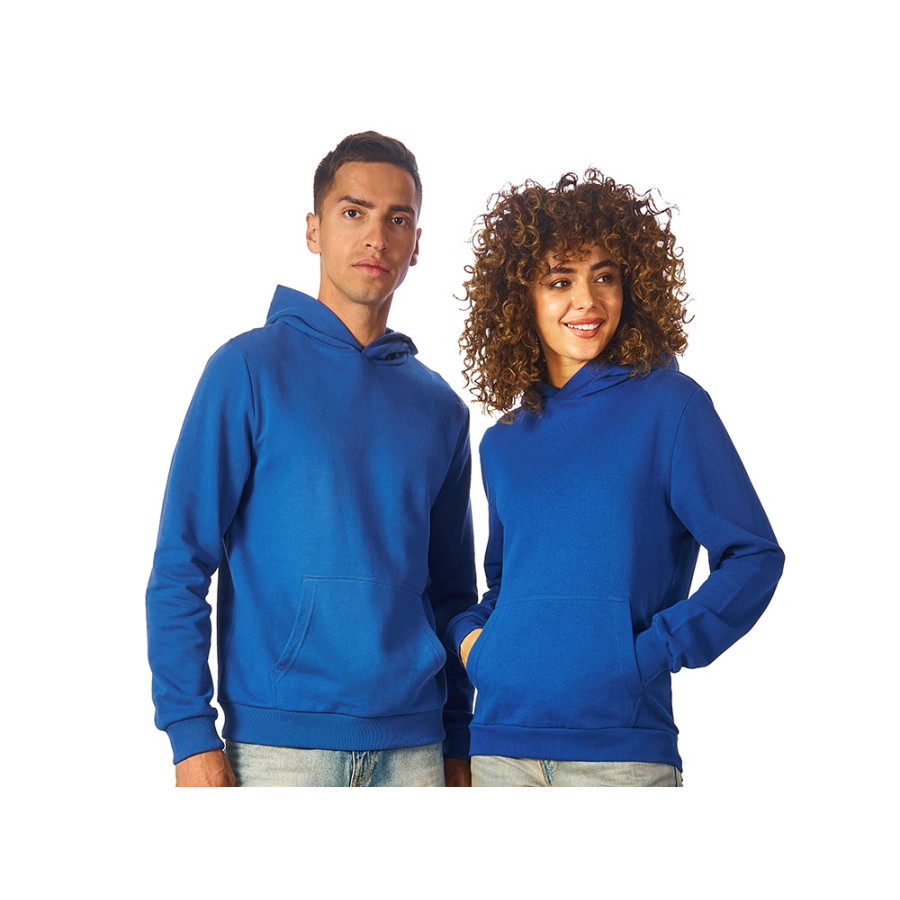 Толстовка с капюшоном (худи) из плотного хлопкового 3х ниточного футера. В капюшоне подкладка в тон, а горловина спинки дополнительно укреплена тесьмой с выделкой елочка. Капюшон без шнурков – ничего не отвлекает от вашего брендирования. Манжеты и низ изделия отделаны рибом 2х2. Глубокий комфортный карман кенгуру на полочке. Полотно из утяжеленного хлопкового футера внутри с петельками без начеса.