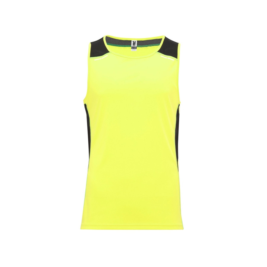 Спортивная майка со светоотражающими деталями. Круглый вырез горловины укреплен декоративной строчкой. Комбинация двух полиэстеровых полотен: основное полотно интерлок, боковые и верхние вставки из микроперфорированного полотна для повышенной воздухопроницаемости. Технологичное полотно быстро сохнет.