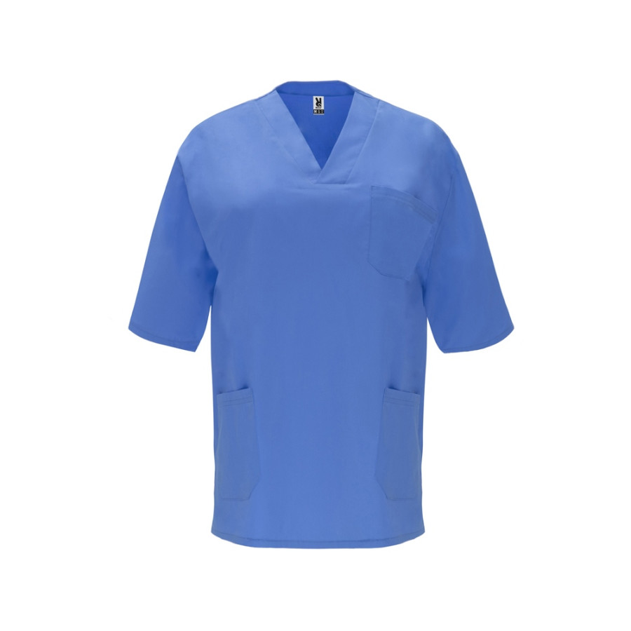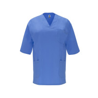Рабочая блуза унисекс с короткими рукавами и горловиной с V-образным вырезом с небольшим запахом. Один нагрудный карман и два карманы по бокам. Боковые разрезы. Комбинируется с брюками Vademecum.