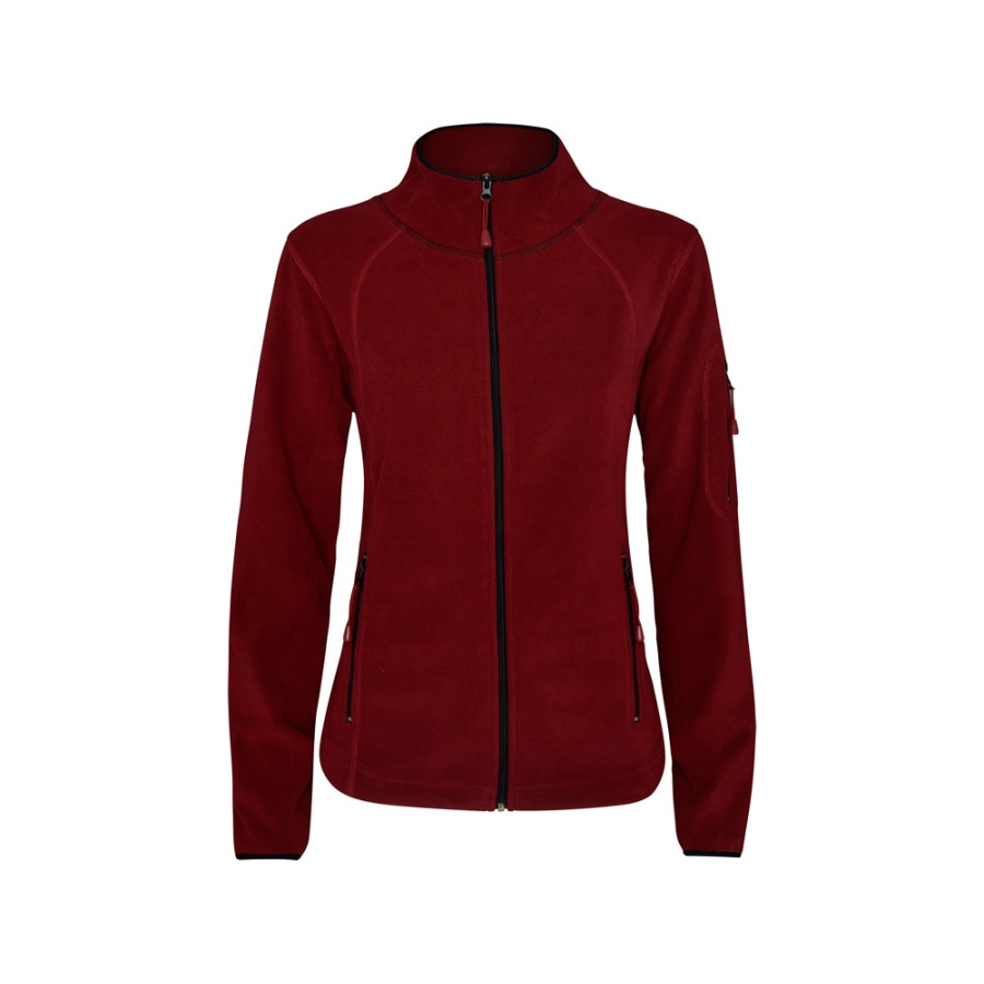 Куртка из микрофлиса с высоким воротом. Контрастная центральная молния, боковые карманы на молнии, декоративная молния на левом рукаве, отделка резинкой по краю рукавов. Налокотники из основного материала.