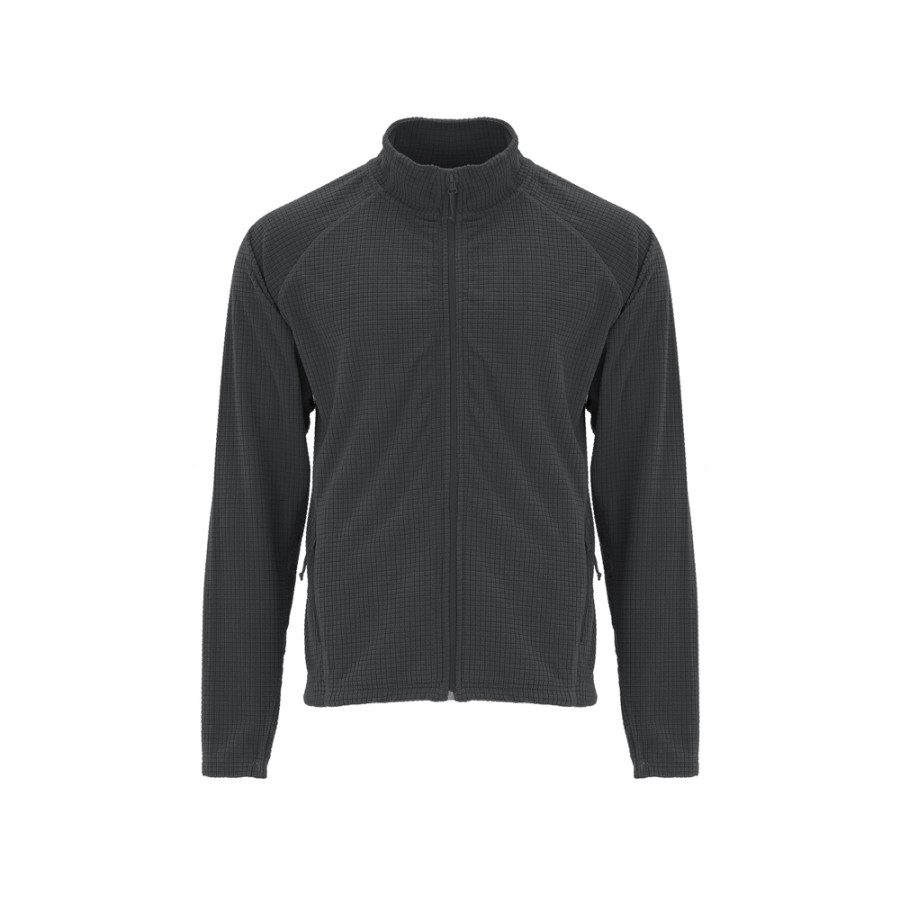 Флисовая куртка с рукавом реглан из полотна со структурой рипстоп (клеточка). Центральная застежка и карманы на молнию в тон. Боковые швы переведены на полочку. Манжеты с разрезом для большого пальца.