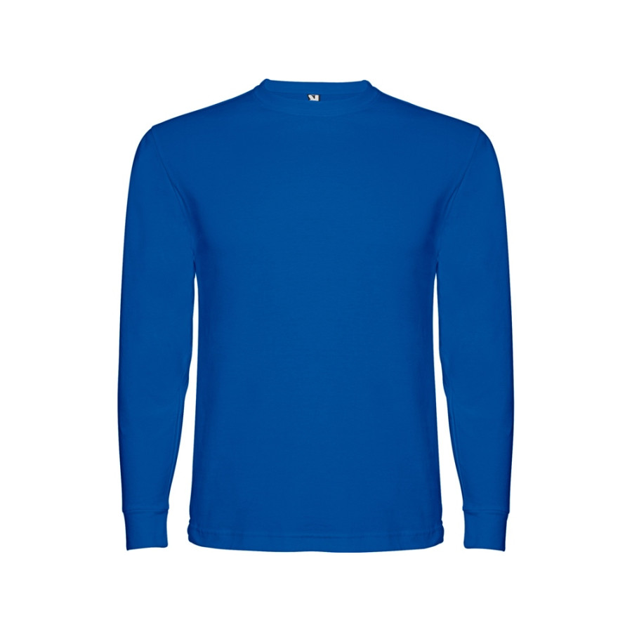 Футболка с длинным рукавом без боковых швов. Круглый вырез горловины и манжеты из риба 1х1. Укрепляющая отделочная строчка по горловине и плечам