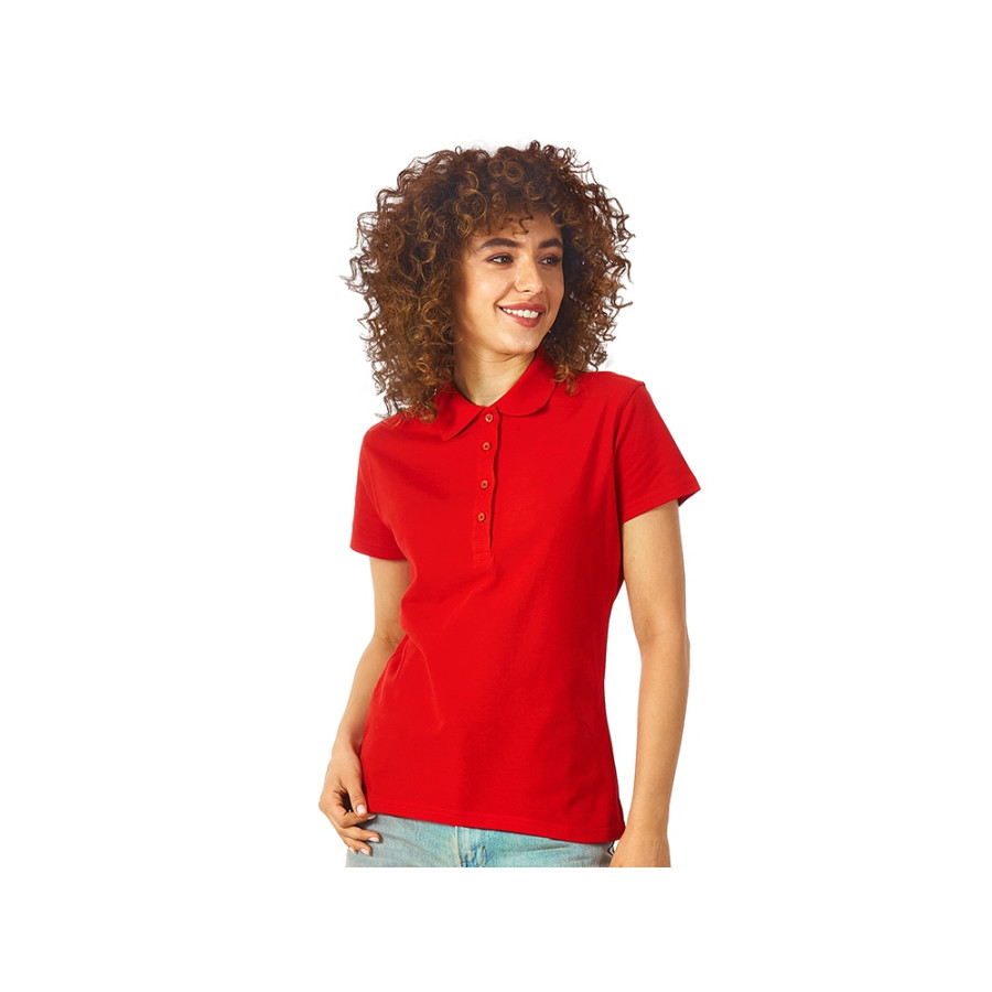Женская рубашка-поло First. Воротник 1х1. Обшивка внутри воротника. Мужская и детская модели с 2 пуговицами, женская - с 4 пуговицами. Пуговицы с гравировкой в тон. Пике, 100% хлопок. 160 г/м2.