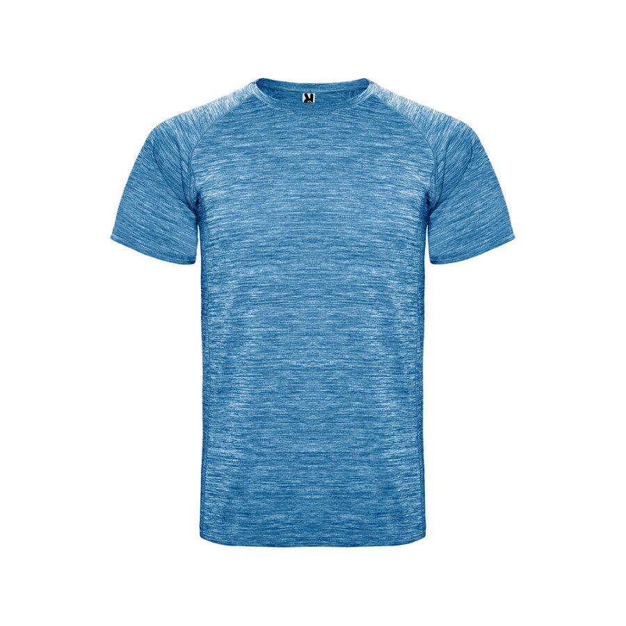 Спортивная футболка из полиэстерового полотна с рукавом реглан. Круглый вырез горловины. Легко сохнущее дышащее полотно с красивым меланжевым эффектом.