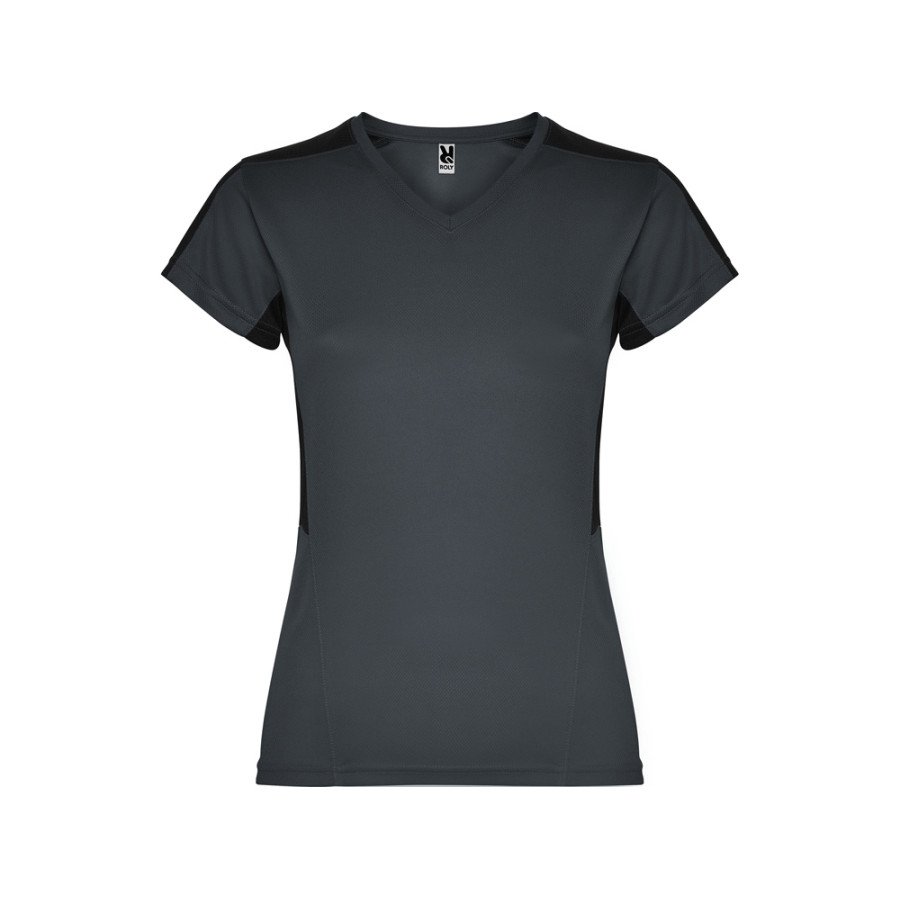 Женская футболка с коротким рукавом. V-образная горловина. Комбинация из 2 полотен контрастного цвета: структурное полотно на полочке и дышащая 3D сетка на плечах и боках.