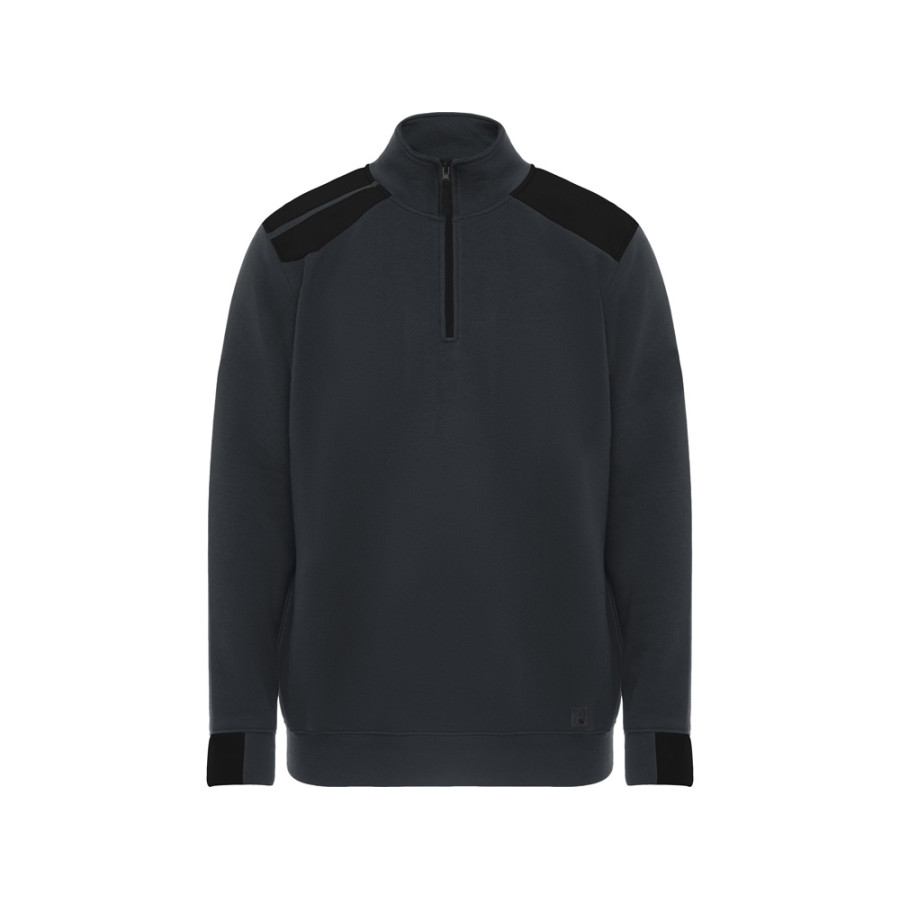 Толстовка с воротом- стойкой на молнии с сочетанием двух цветом. Половина манжет и низ изделия из рибового полотна 1х1. Укрепляющая отстрочка по внутреннему воротнику. Контрастные плечи, детали, молния и манжеты