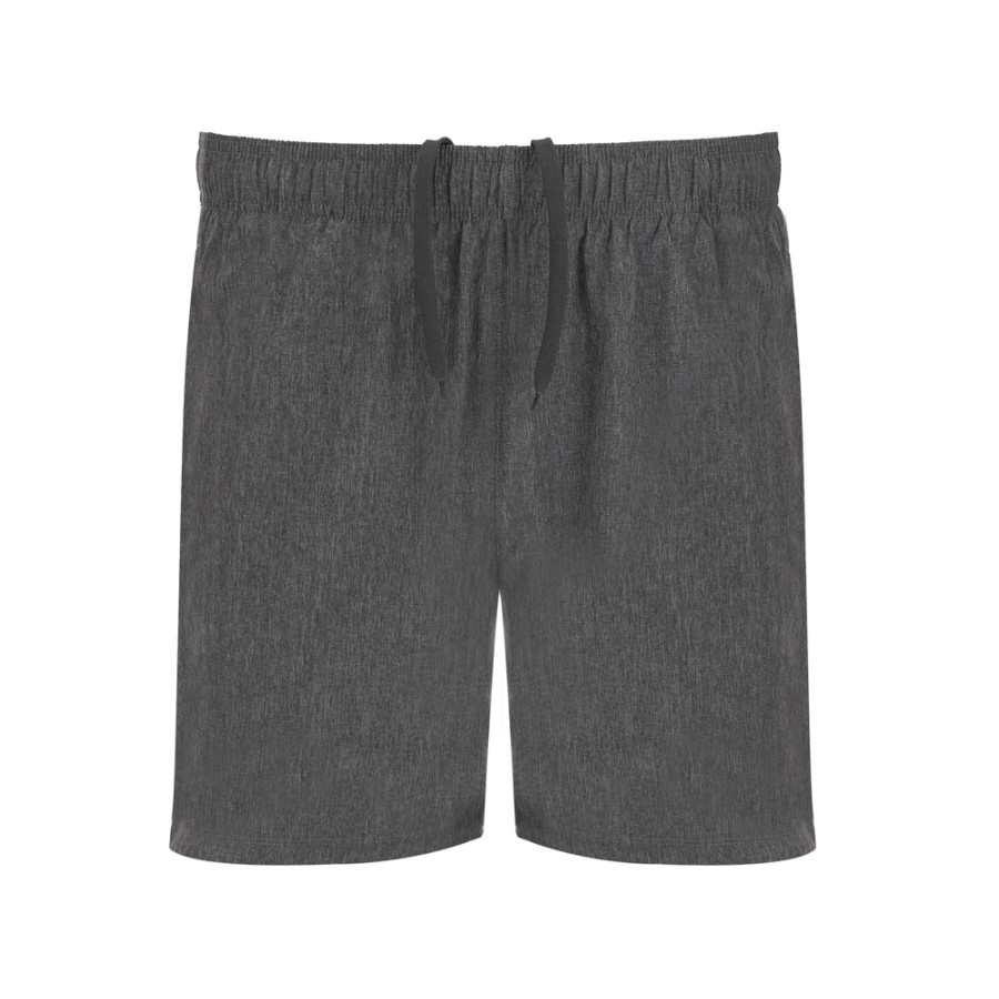 Спортивные шорты из двух видов полотен с подкладкой - трусами. Эластичный пояс с контрастным внутренним шнурком. Лампасы по бокам из дышащей ткани. Два карманы по бокам. Асимметричные боковые разрезы внизу.