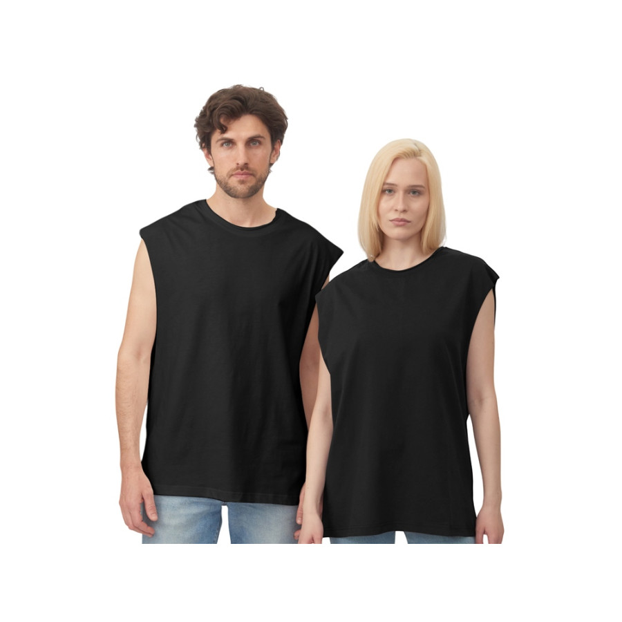Майка унисекс расширенного силуэта со спущенным плечом, выполнена из плотного джерси 180гр.