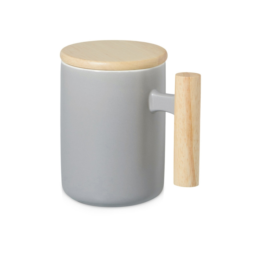 Кружка с ручкой и крышкой из каучукового дерева Jeny, серый