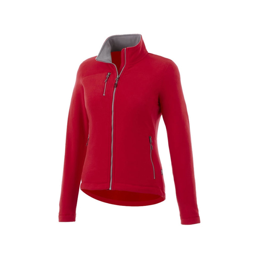Женская микрофлисовая куртка Pitch. Карманы для рук на молнии. Нагрудный карман на молнии. Внутренняя сторона воротника в контрастном цвете. Внутренний выход для медиапроводов. Обратная контрастная молния спереди. Молния легкого скольжения. Двухцветная лента по линии окантовки горловины. Тканая -флажок сбоку. 100% полиэстер микро флис. 200 г/м².