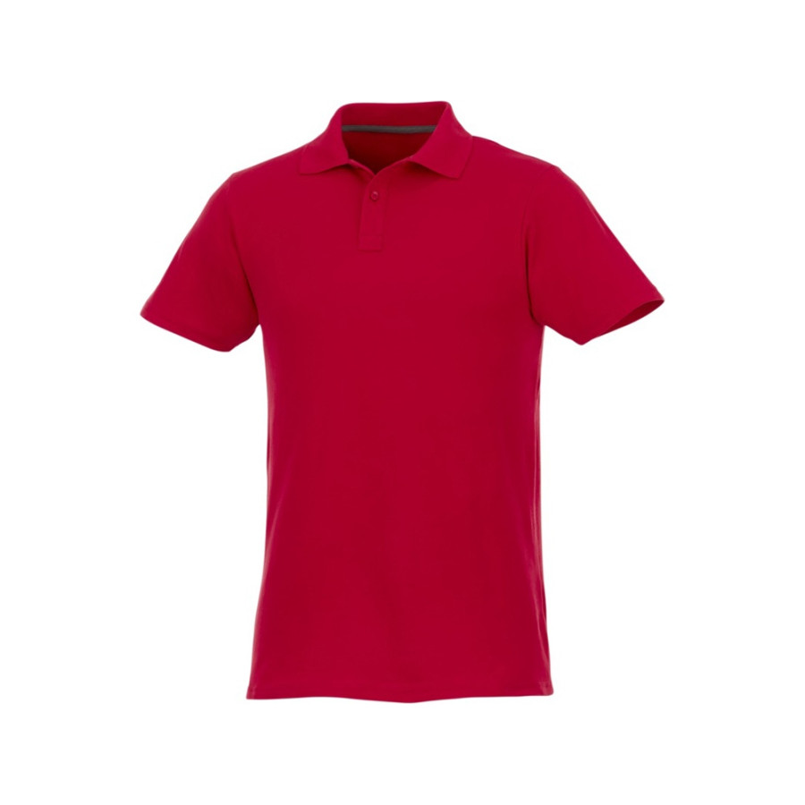 Мужское поло Helios с коротким рукавом. Отрезной-отрывной ярлык для комфорта. Воротник гладкой вязкой в рубчик. Планка с двумя пуговицами. Двойная строчка на воротнике и внизу изделия. Пуговицы в цвет изделия. Полоска на горловине в контрастном цвете. Трикотаж Piqué, 100 % хлопок. 180 г/м².