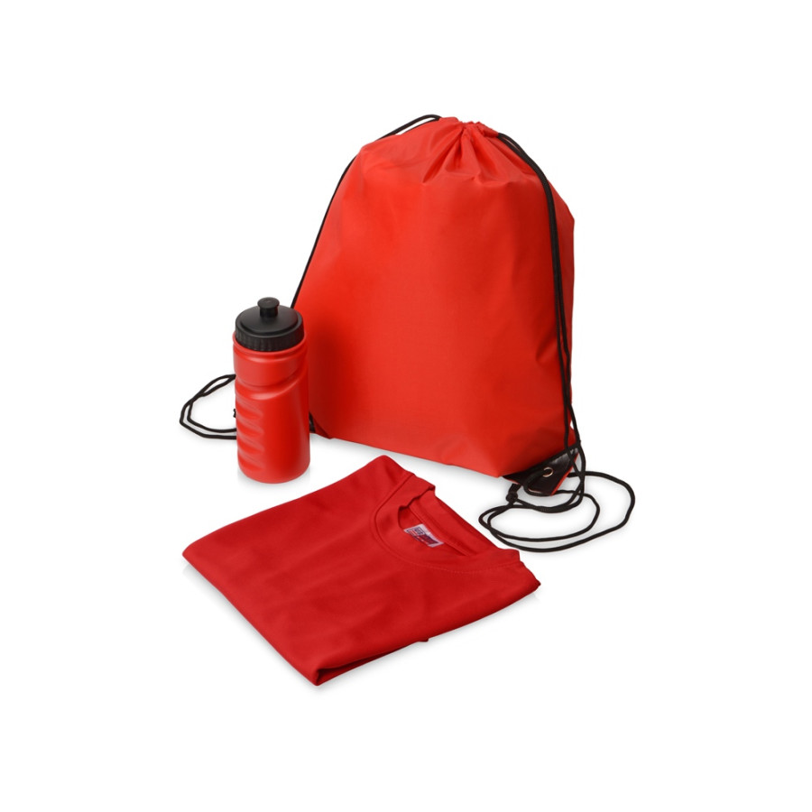 Спортивный набор состоящий из футболки, спортивной бутылки и удобного рюкзака. Комплектность: футболка мужская XS, бутылка 500 мл, рюкзак 33 х 44 см