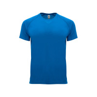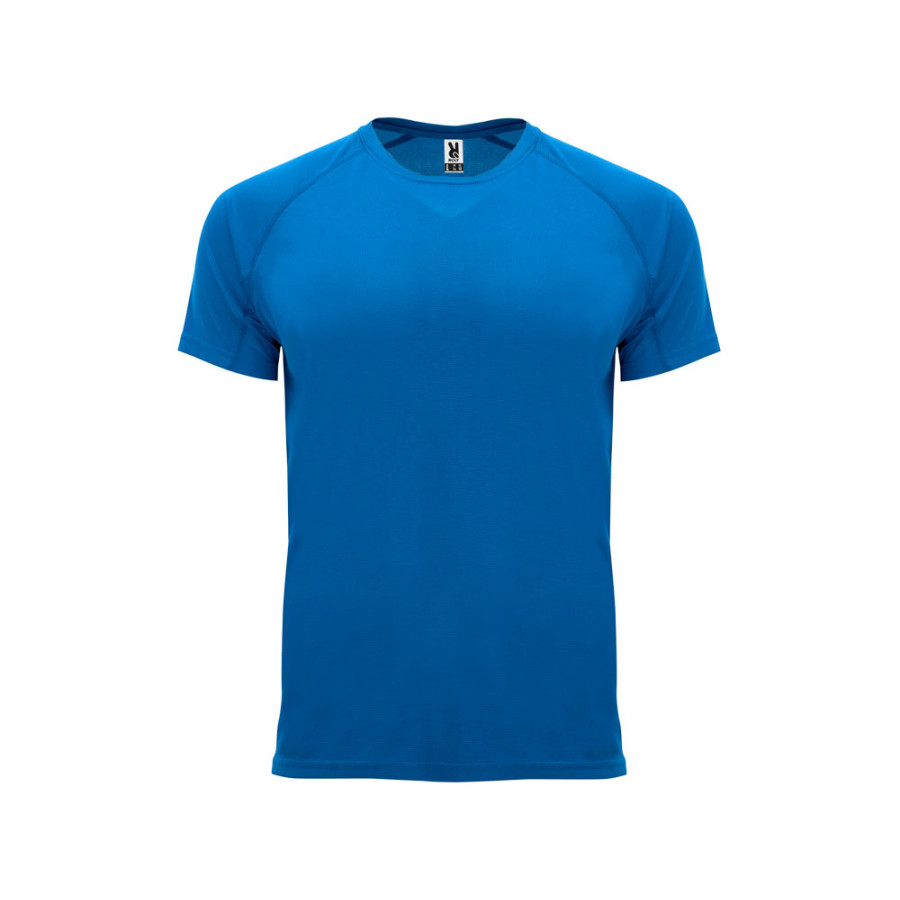 Спортивная футболка с коротким рукавом реглан. Круглый вырез горловины с отделкой плоским швом. Рукав сложного кроя для обеспечения дополнительного удобства при занятиях спортом. Отделка плоским швом с застилом по пройме и рукавам.