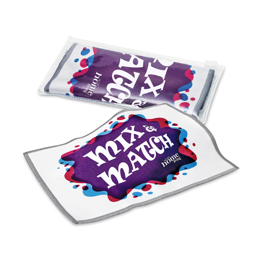 Салфетка из прочной микрофибры поможет легко очистить очки или фото- и видеокамеры от пыли и загрязнений. Мягкий материал не царапает поверхность линз, продлевая их срок службы. Также брендированная салфетка подойдёт для внутреннего использования в IT-компаниях для ухода за мониторами и экранами ноутбука. Печать на салфетках осуществляется с помощью сублимации. Такой метод позволяет передать детали рисунков и сложные переходы цвета.
