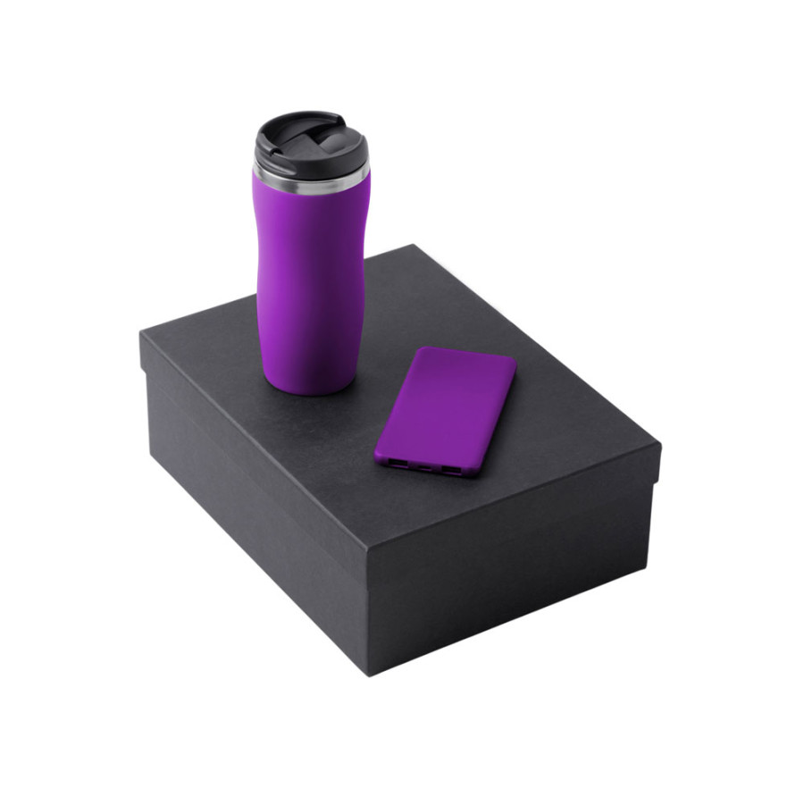 Подарочный набор c вакуумной термокружкой и повербанком С1, фиолетовый