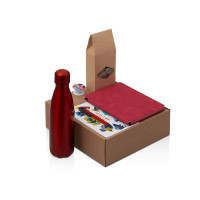 Подарочный набор с термобутылкой, блокнотом, ручкой и чаем, красный