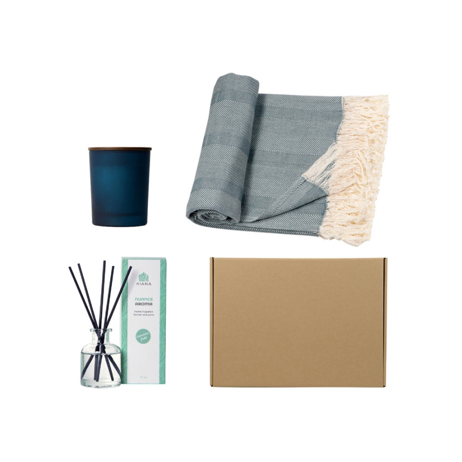 | Материал: | плед - 100% хлопок, аромат для дома - стекло, фибровые палочки, свеча - воск, стекло, дерево, коробка - картон |