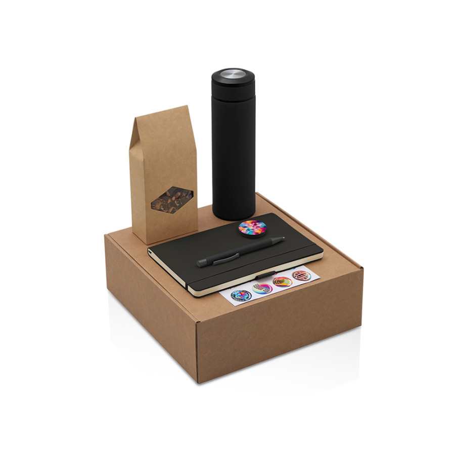 Подарочный набор с термосом, блокнотом, ручкой и чаем, черный