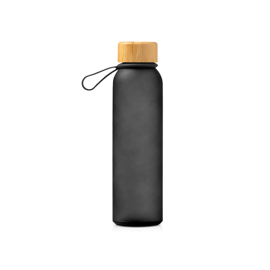 Полупрозрачная бутылка из переработанного стекла. Бамбуковая крышка с держателем. Объём: 500 мл. Поставляется в индивидуальной коробке.