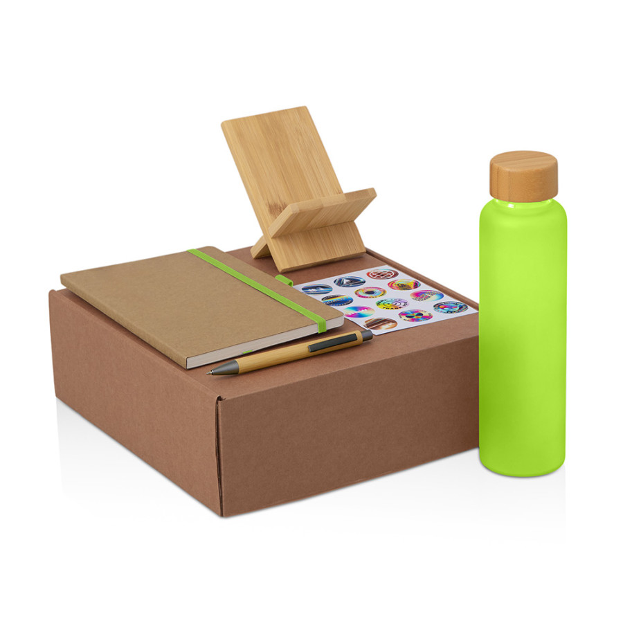 Подарочный набор с бутылкой для воды. блокнотом, ручкой и подставкой для телефона, зеленое яблоко