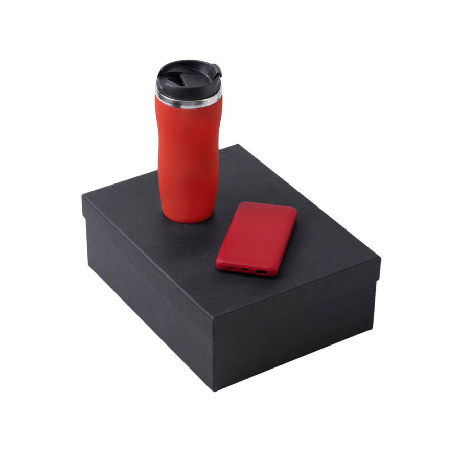 Подарочный набор c вакуумной термокружкой и повербанком С2, красный