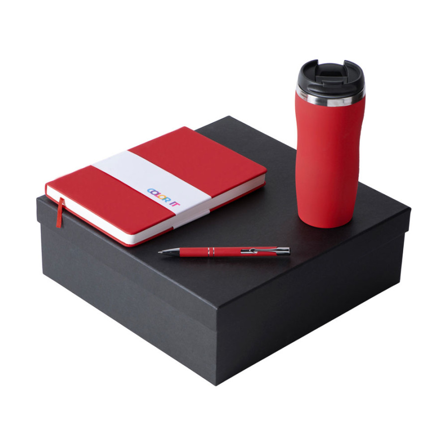 Подарочный набор с блокнотом С2, металлической ручкой и термокружкой, красный