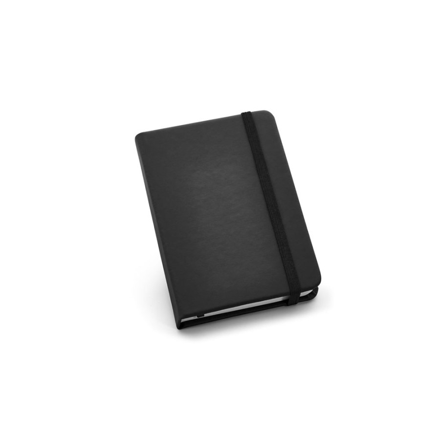 Карманный блокнот на 160 страниц в линейку с твердой обложкой из искусственной кожи, с разделительной лентой и резинкой. 90 x 140 мм