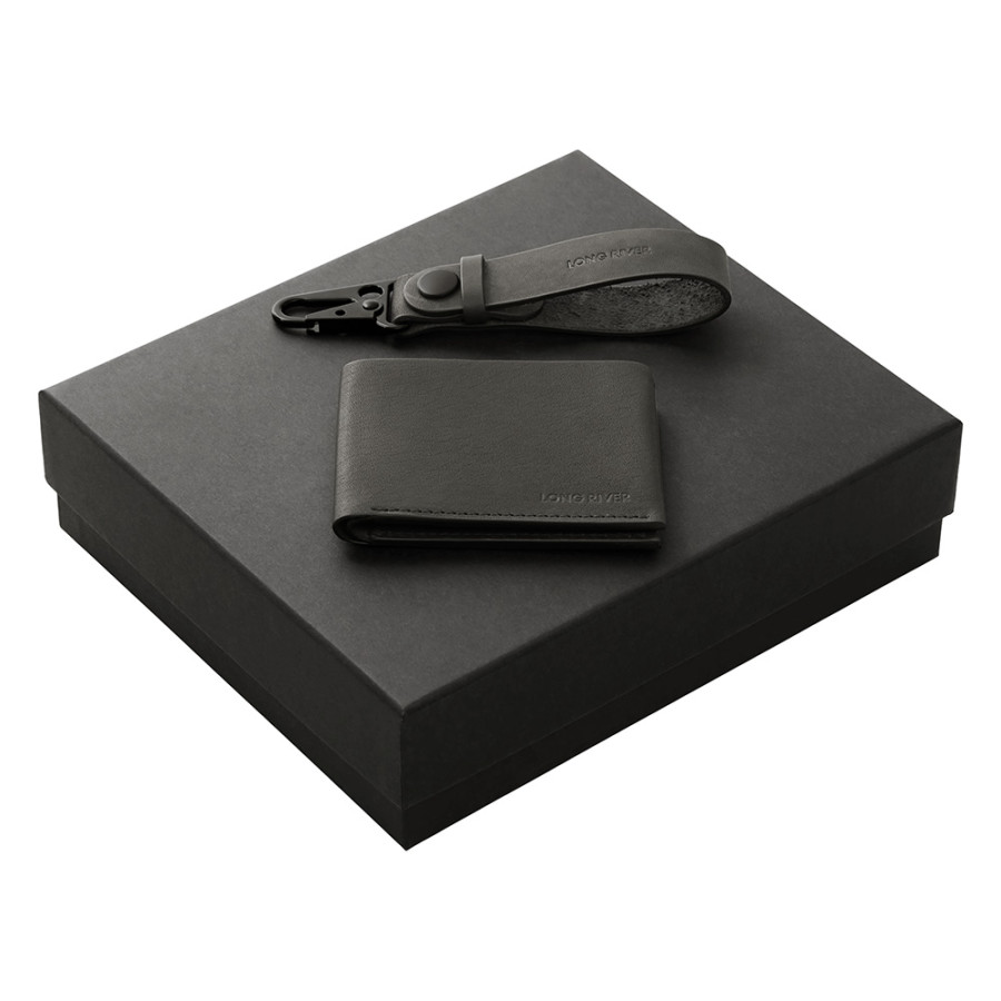 Подарочный набор Long River: кошелек, ремешок для ключей, черная коробка