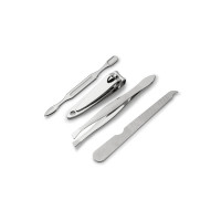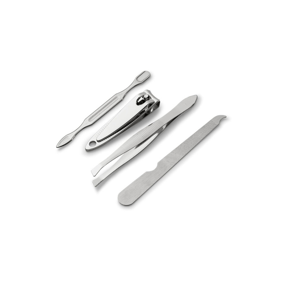 Набор из 4 предметов для маникюра в пакете из ПВХ, состоящий из пилочки, пинцета, щипчиков для ногтей и лопатки для кутикулы. 66 x 105 мм. Вид нанесения, рекомендуемый поставщиком: трафаретная печать, гравировка. Комплектность: пилочка, пинцет, щипчики для ногтей, лопатка для кутикулы
