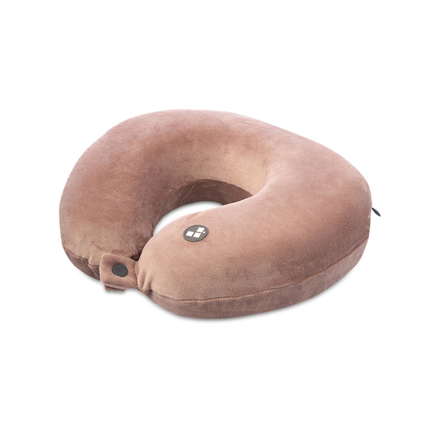 Удобная кнопочная застёжка надёжно фиксирует подушку на шее, а в комплект входит прочный круглый чехол на молнии — для компактного хранения и перевозки.
