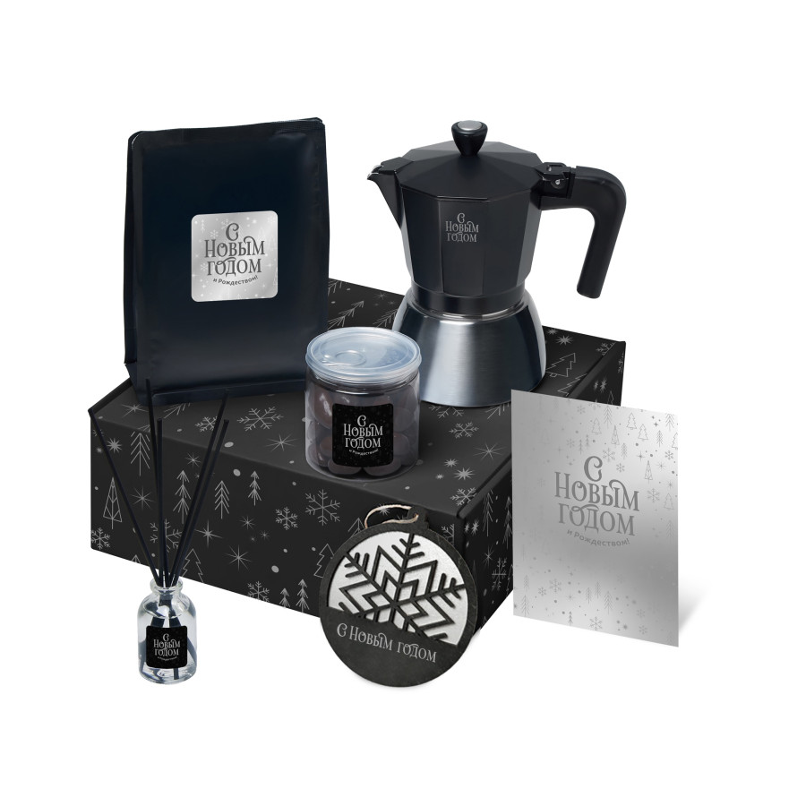 Подарочный набор с гейзерной кофеваркой, кофе и диффузором