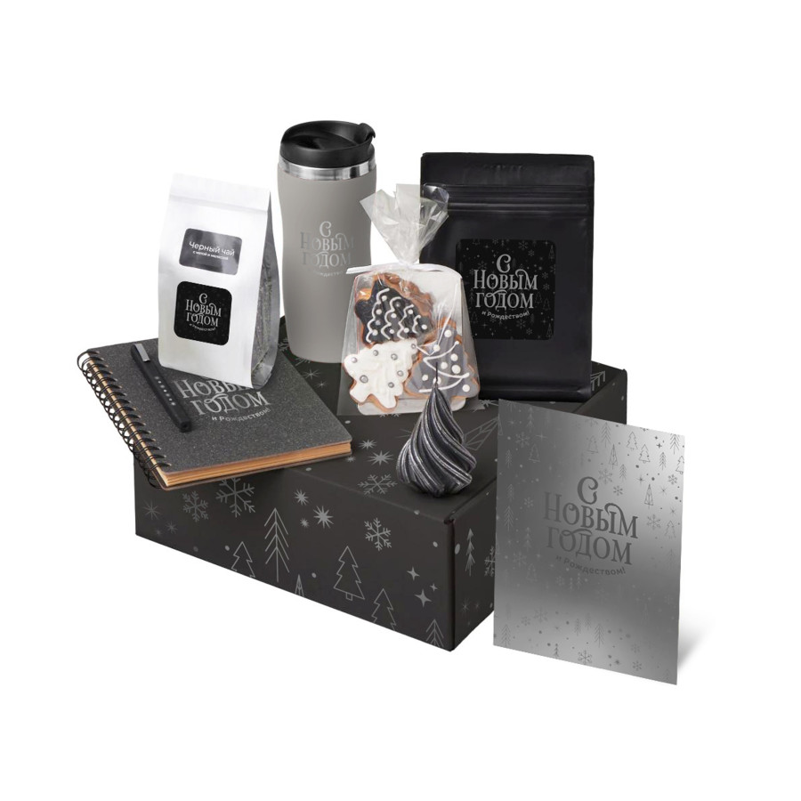 Подарочный набор c термокружкой, чаем, кофе и блокнотом, серый