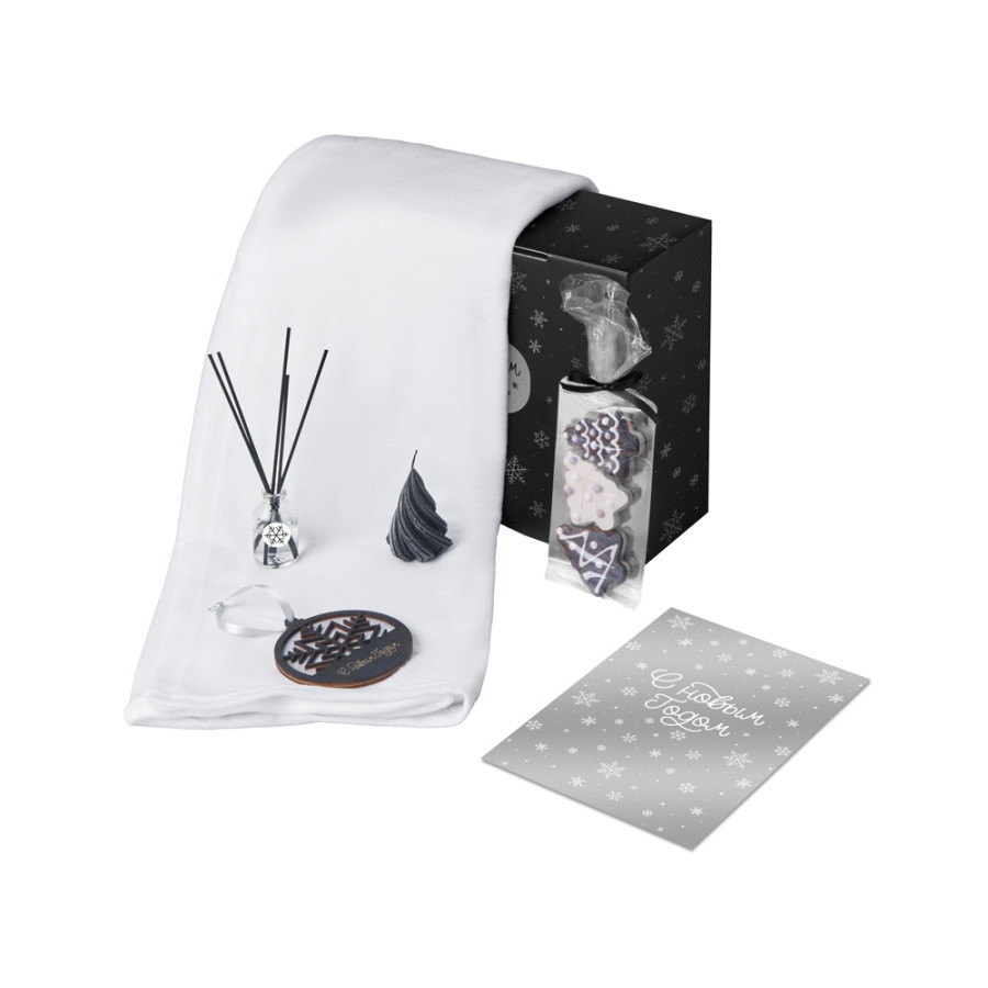 | Материал: | плед - флис 100% полиэстер; подвеска - березвовая фанера; открытка - бумага; мешок - нетканый материал (спанбонд) |
