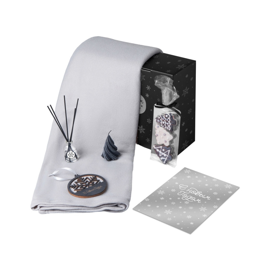 Подарочный набор с пледом, свечой и диффузором, серый