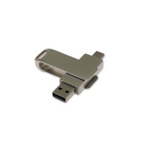 Флеш-накопитель поворотный механизм, c дополнительным разъемом Type-C с одноцветным металлическим клипом, объем памяти 64 ГБ. Металлический корпус.