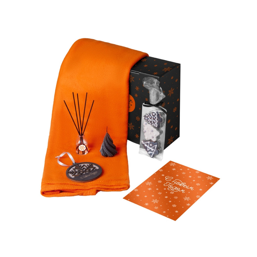 Подарочный набор с пледом, свечой и диффузором, оранжевый