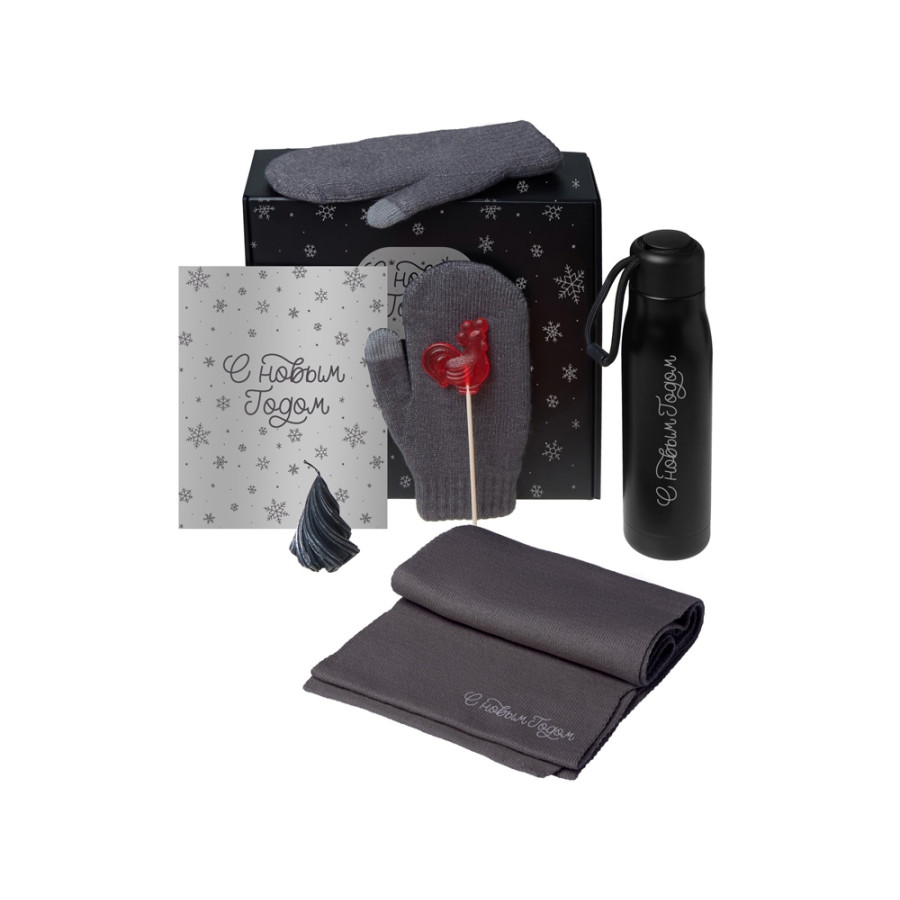 | Материал: | варежки - 100% акрил; шарф - 100% акрил; термос - нержавеющая сталь; открытка - бумага; мешок - нетканый материал |